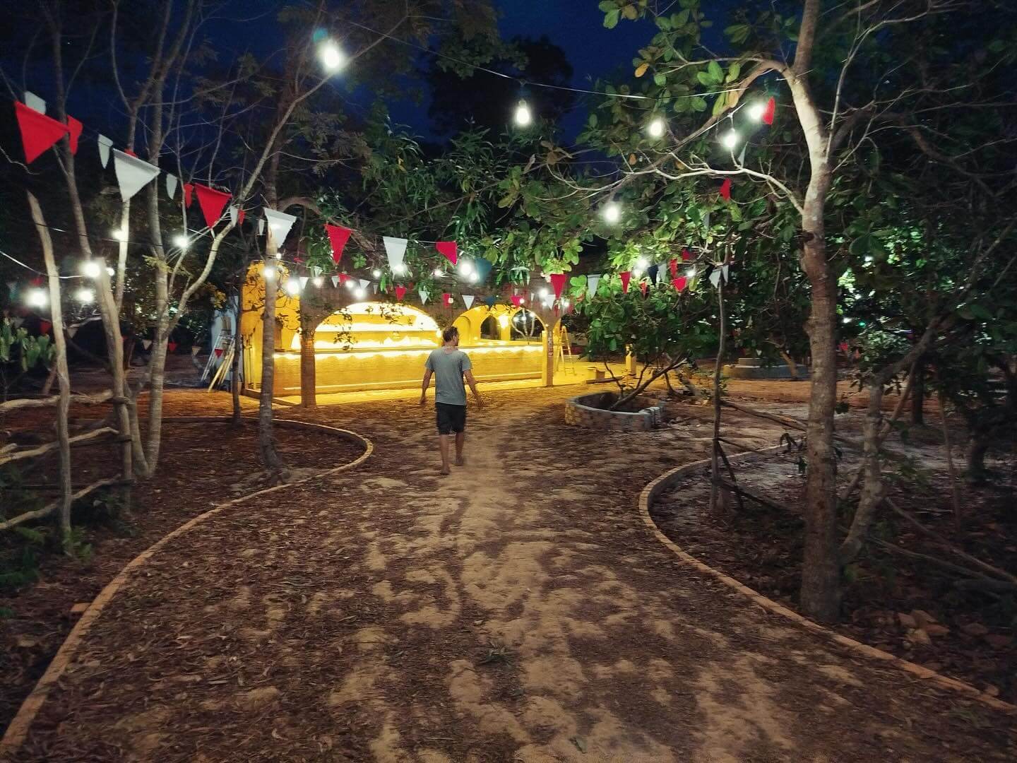 Open-air event space in a beautiful park, surrounded by cashew trees with plenty of shaded seating. It features a stage, a cozy bar, a central firepit—and public toilet facilities. Live music performances and other celebrations are regularly held here—contact us to pre-book the space. During events, the area comes alive with a variety of food and artisan stalls.