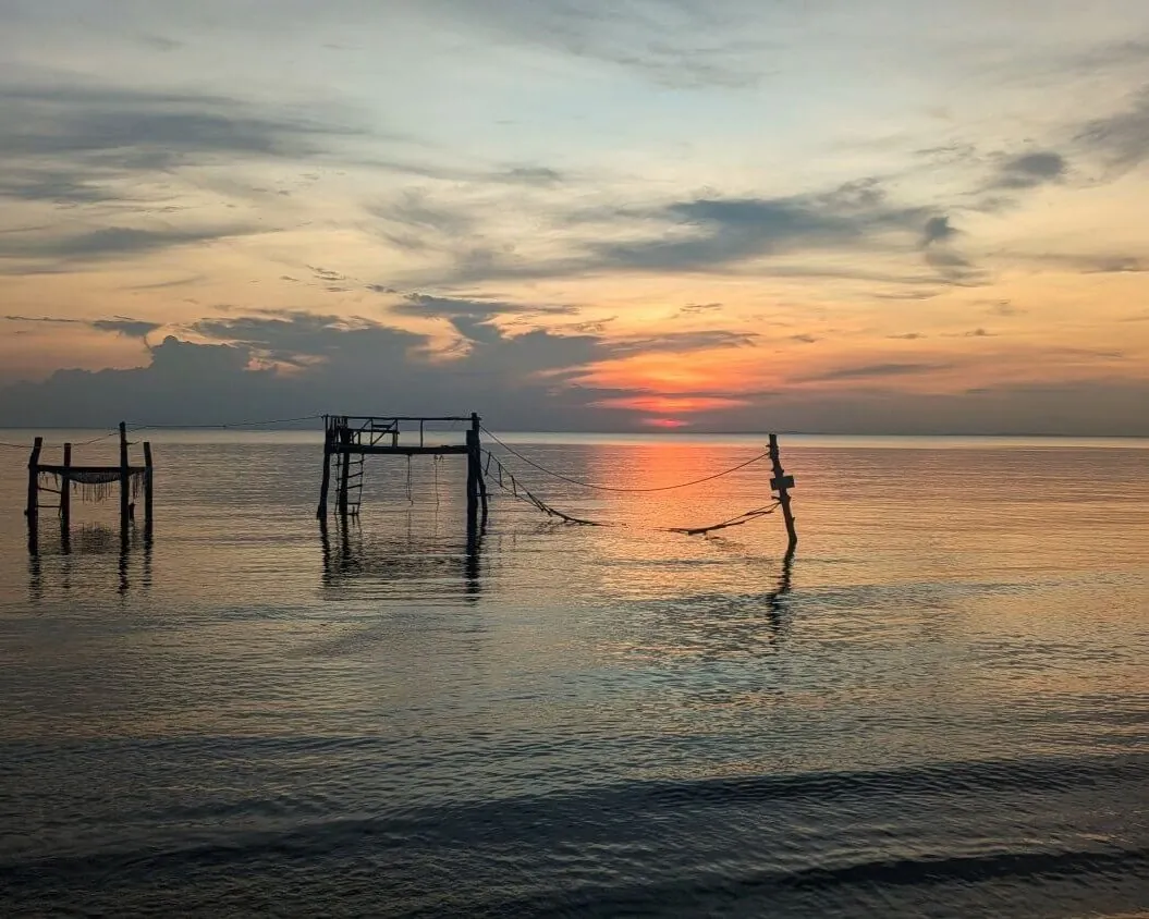 Generally quieter than Nesat Beach, Elephant Beach is a relaxed spot managed by Mangrove Beach Resort. The beach is free to visit, and if you get hungry, the resort’s restaurant serves delicious Cambodian dishes, coffee, and cold drinks. Along the shore, you’ll find wooden huts with hammocks to chill in, plus a swing set in the water for some fun. If you’re feeling active, kayaks are available for hire.